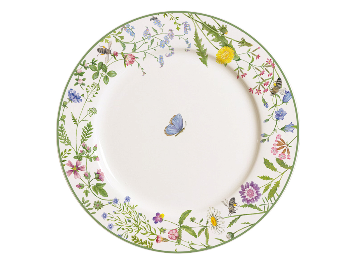 Porseleinen dessertbord Meadow met prachtig bloem- en dierenmotief, gemaakt van fine bone China porselein.