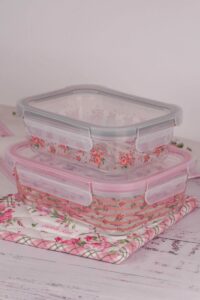 De containers zijn gemaakt van glas dat geen geur en kleur van voedsel absorbeert, waardoor ze gemakkelijk schoon te maken zijn.
