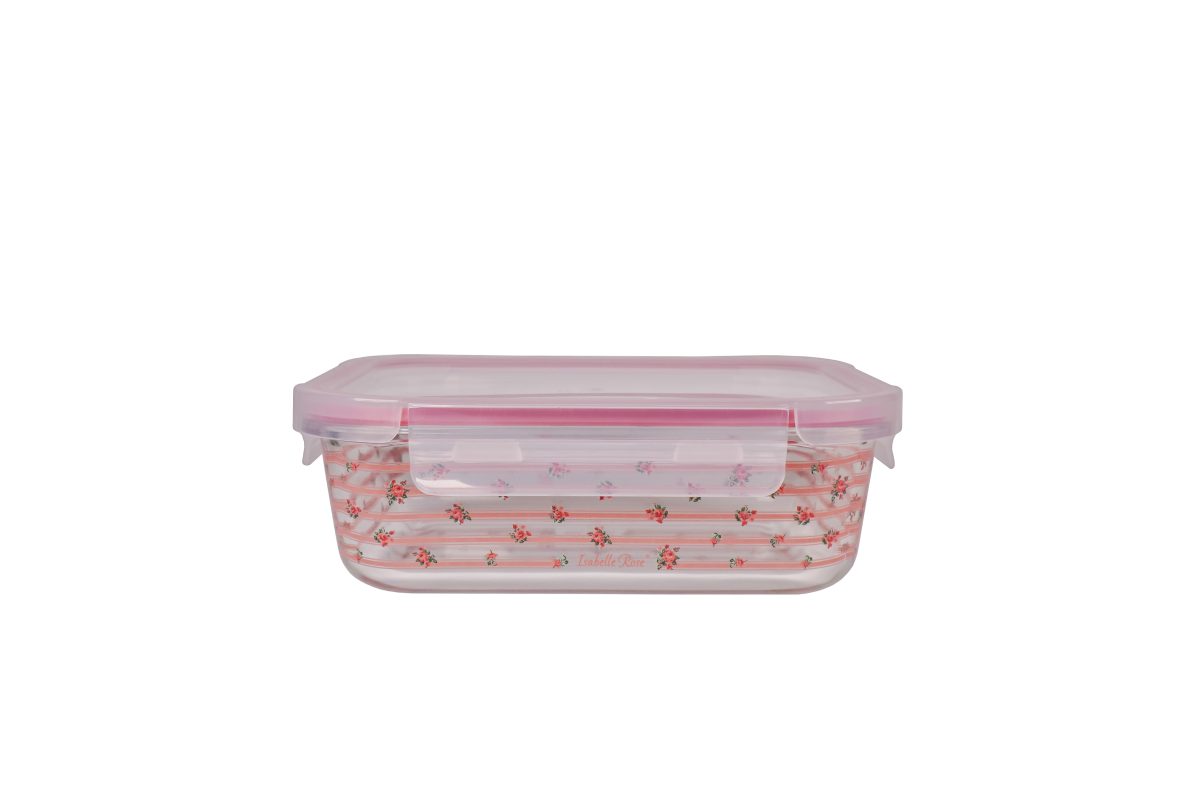 Set van twee glazen containers in twee maten. Elke container heeft een andere Bella-designprint; M – Bella-strepen en S- Bella-rozen.