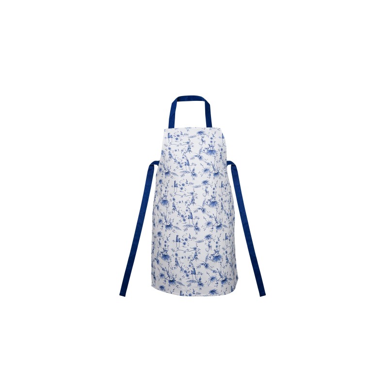Van deze luxe katoenen keukenschort word je gegarandeerd vrolijk. De speelse aapjes zijn heerlijk aan het genieten op het keukenschort en klimmen en klauteren tussen de Delfts blauwe takken. Het keukenschort heeft een verstelbare neksluiting met gesp.
