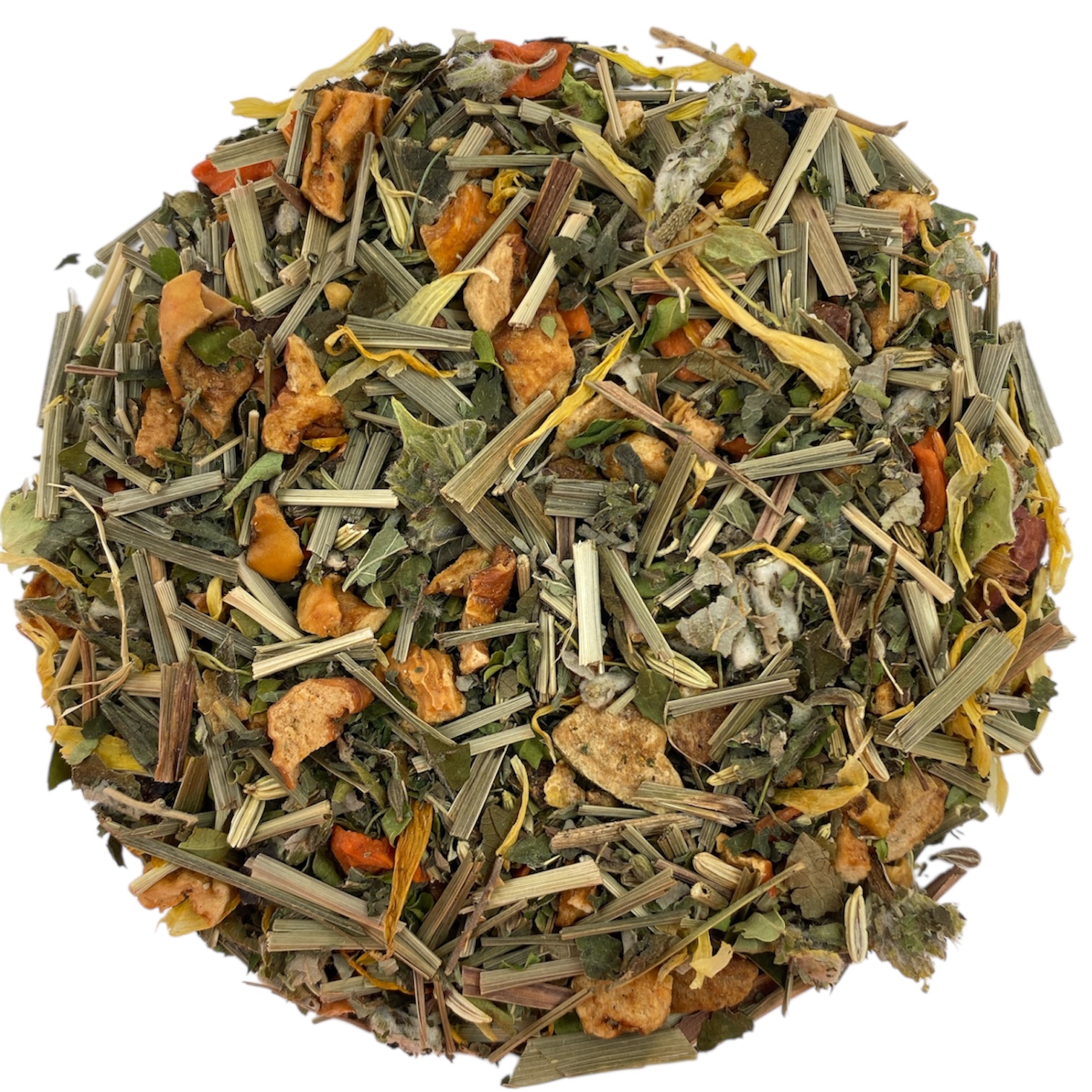 Ingrediënten: appel, citroengras, wortel, anijs, peer, venkel, melisse, moringa blaadjes, braamblad, zoete braamblad, Griekse bergthee, aroma's en goudsbloem
