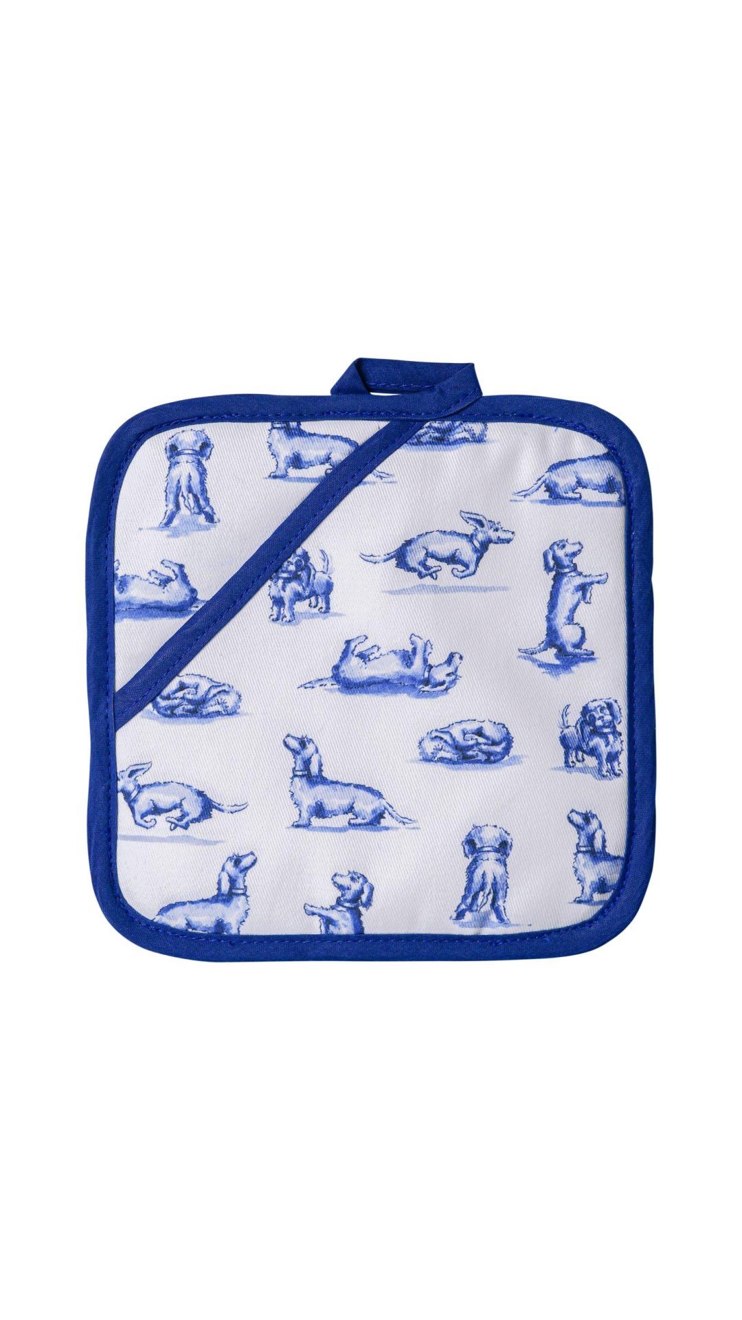 Van deze luxe katoenen pannenlap word je gegarandeerd vrolijk. De speelse teckel Nhaan leeft zich heerlijk uit op de pannenlap en ze laat zich van al haar beste, vrolijke en aandoenlijke kanten zien. De stevige pannenlap is onderdeel van de Sharing Moments collectie van Janny van der Heijden.