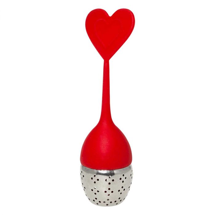 Theefilter in roestvrij staal met siliconen steel in hart vorm.