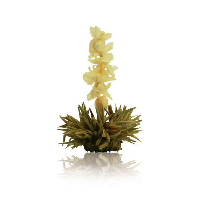 Plaats de theebloem in een glazen theepot, zo kan je het ontvouwen van de theebloem bewonderen. Schenk 500 ml – 800 ml kokend water in de theepot, na 4 – 6 minuten ontpopt het theebolletje zich tot een wondermooie bloem. Geniet van je theebloem.