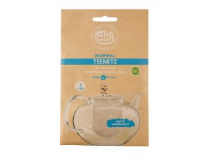Herbruikbare, afwasbare theefilter in 100% hoogwaardig wit katoen uit gecontroleerde natuurvriendelijke teelt, ongebleekt.