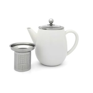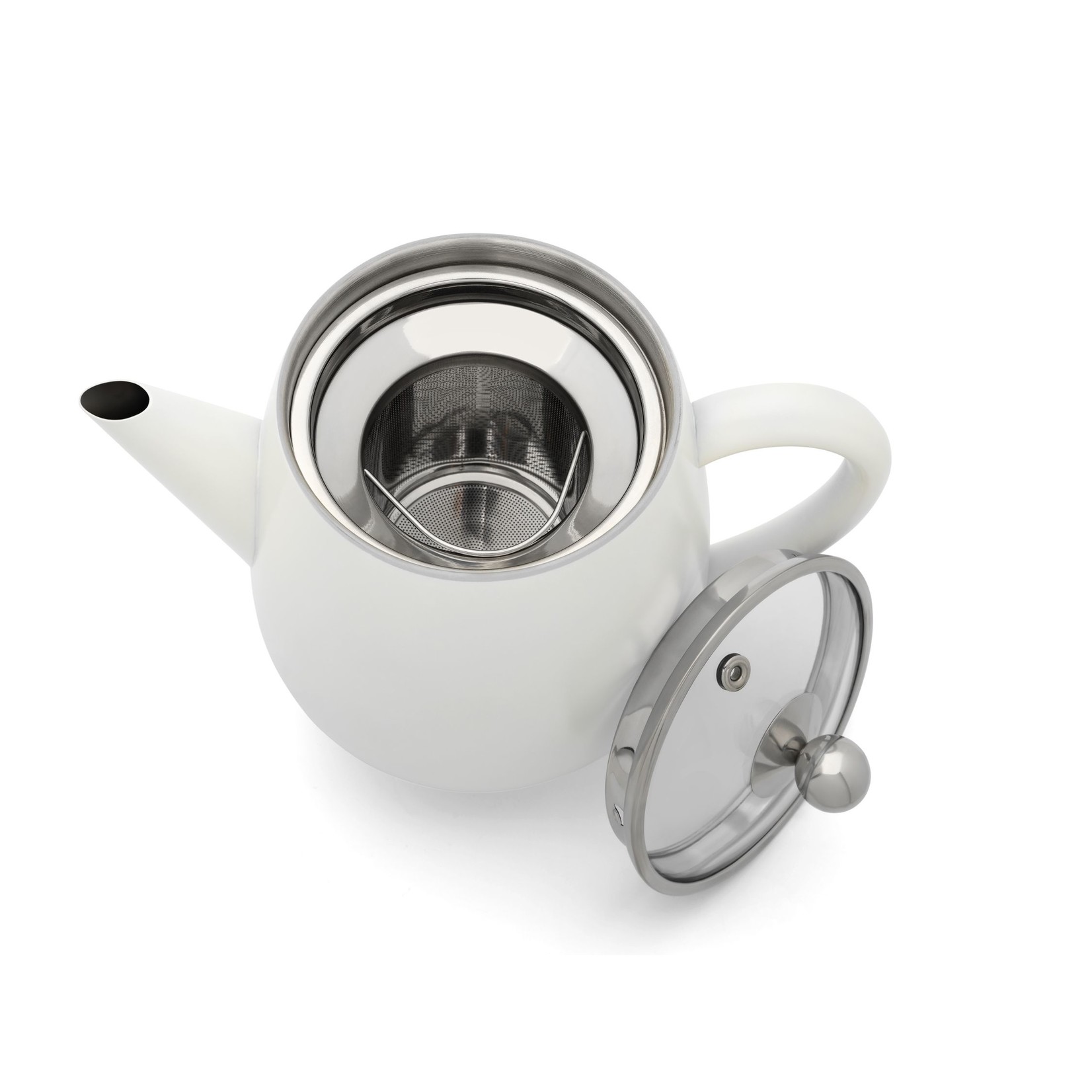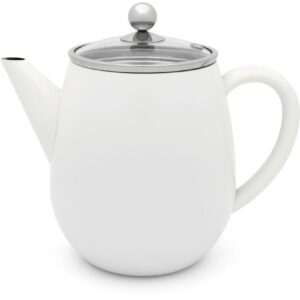 De dubbelwandige Theepot Duet Eva heeft een inhoud van 1,1 liter. Deze witte theepot is van roestvrij staal en bevat een theefilter.