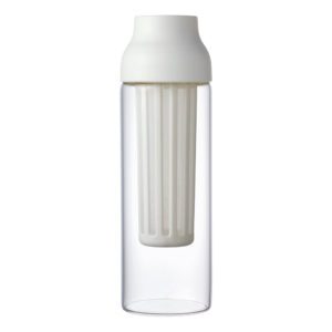 Cold brew karaf 'CAPSUL' van het merk Kinto. Het deksel opent automatisch wanneer het gekanteld wordt en sluit wanneer het rechtop gezet wordt. Op deze manier kan je gemakkelijk en vlotjes gieten. De optimale grootte en specificatie van de verschillende onderdelen zijn zorgvuldig bestudeerd, zodat u gemakkelijk vanuit elke richting kunt gieten. De cold brew karaf wordt geleverd met een gaasfilter waarmee u gemakkelijk heerlijke koude thee en koffie kunt zetten.