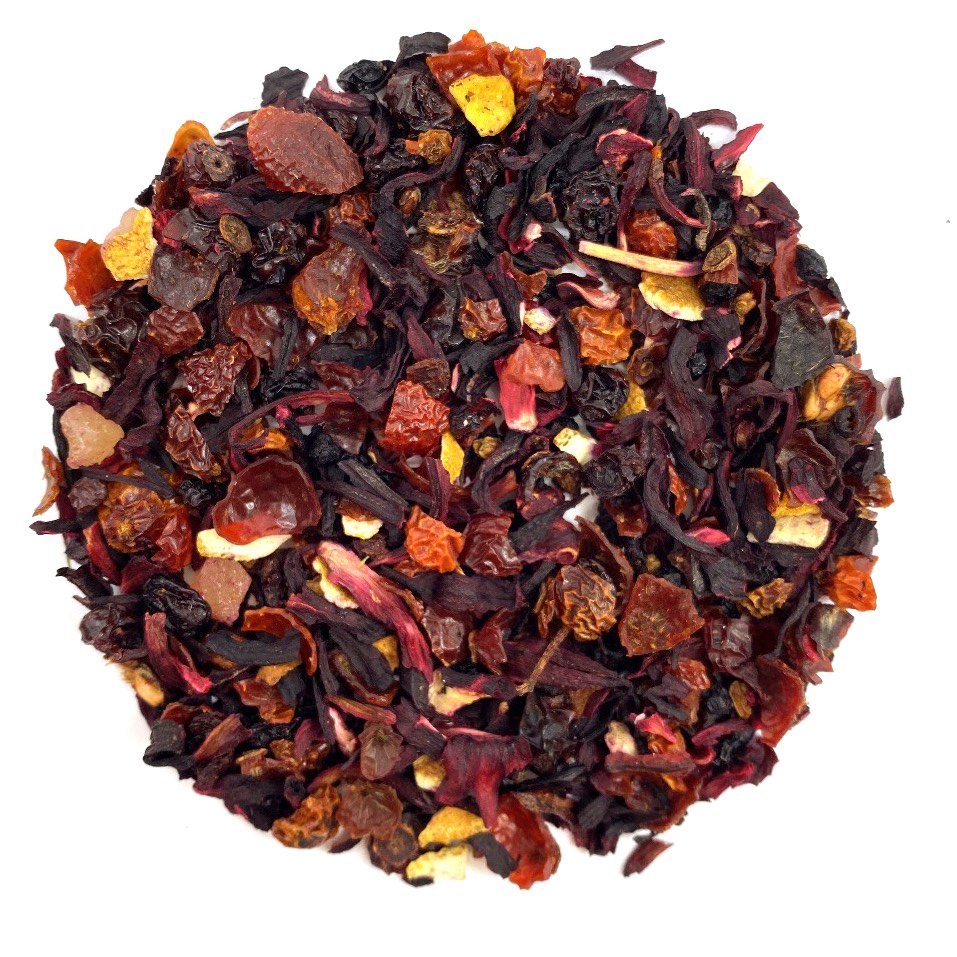Rozenbottel, hibiscus, vlierbes, rozijnen, aalbes, aroma's, framboos, kers